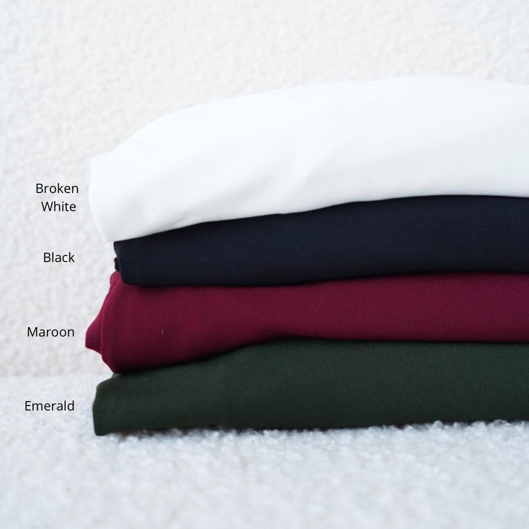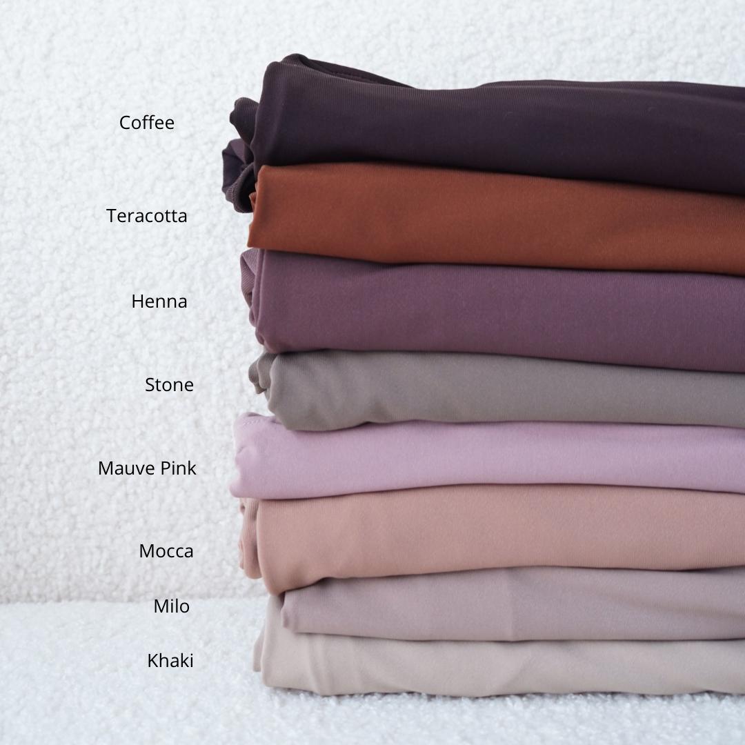 | Color | Ash Grey, Black, Broken White, Burgundy, Coffe, Emerald, Henna, Khaki, Lavender, Maroon, Mauve Pink, Milo, Mocca, Pink, Plum, Stone, Teracotta |